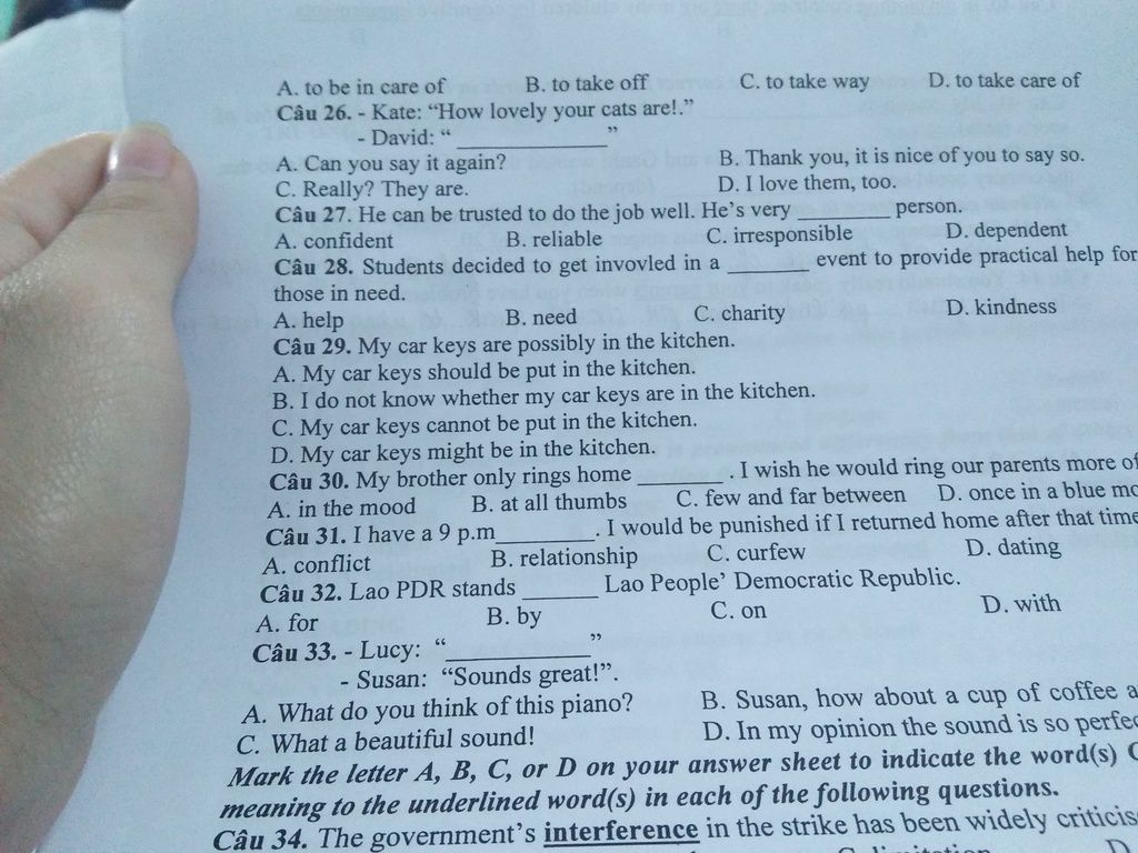 Câu 26. - Kate: "How lovely your cats are!."