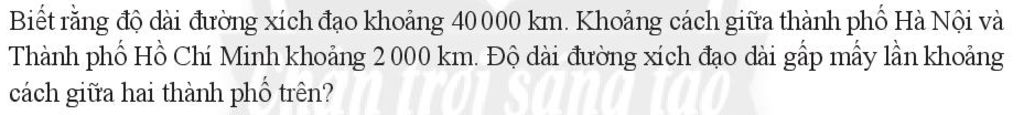 Độ dài đường xích đạo dài gấp số lần khoảng cách giữi hai thành phố trên là: