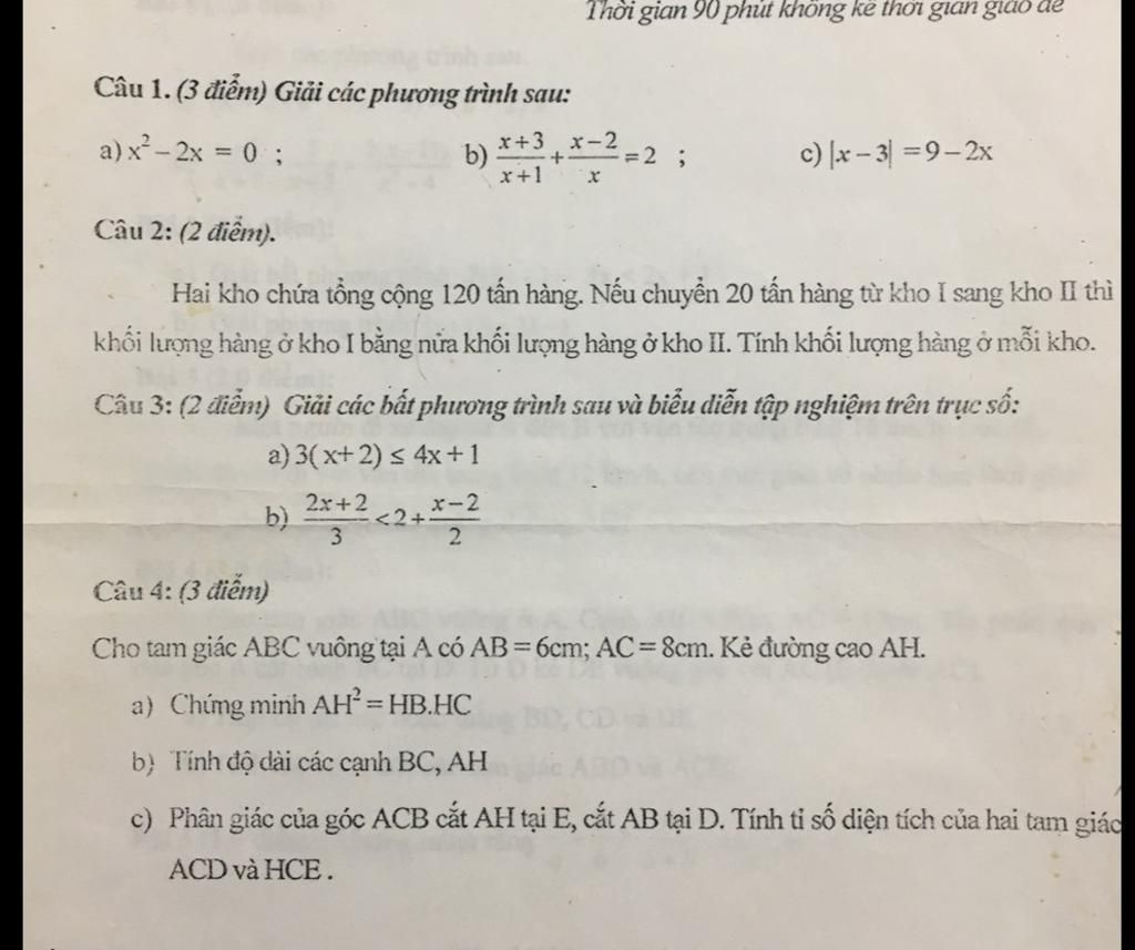 Câu 1. (3 điểm) Giải các phương trình sau: