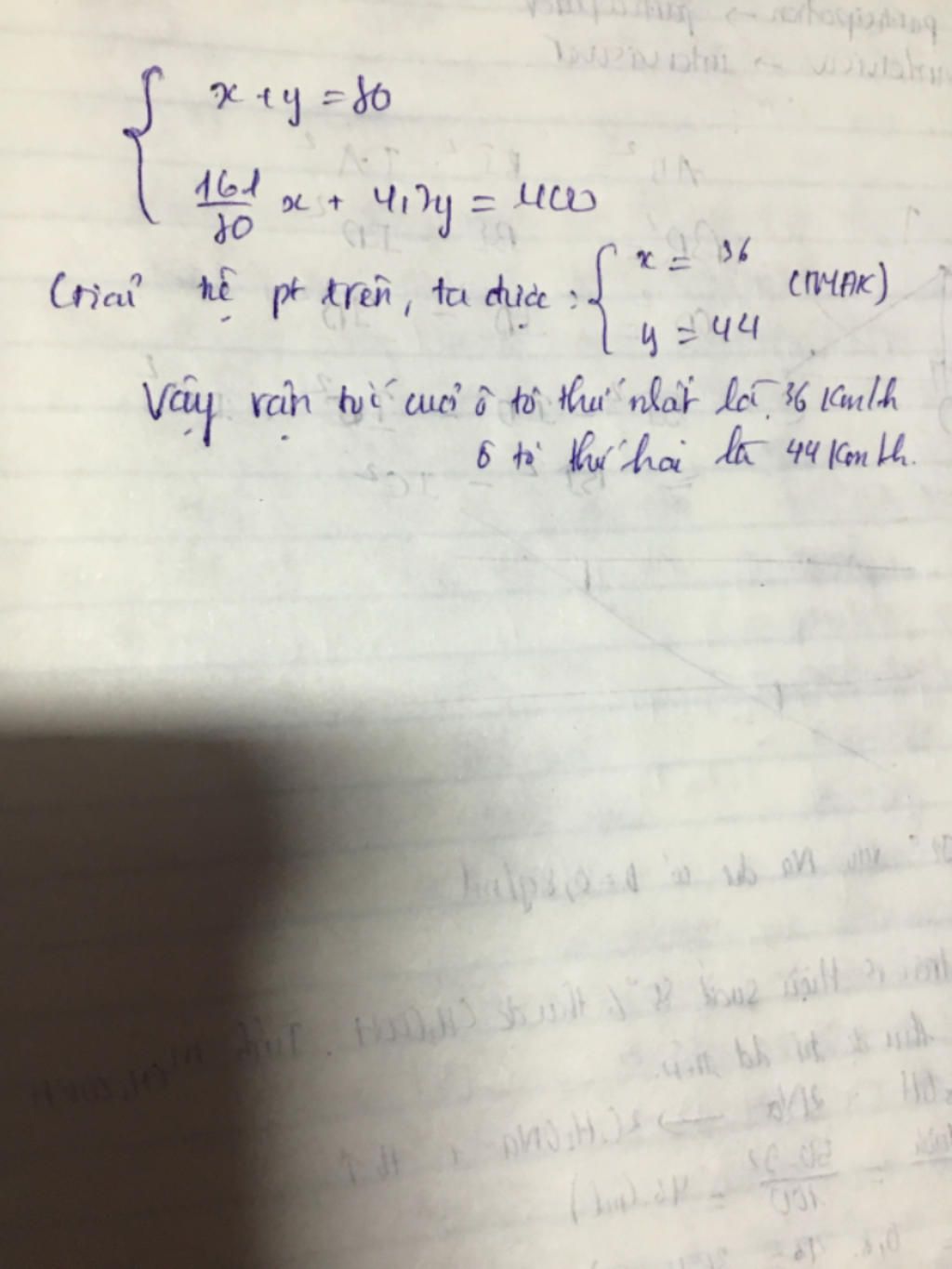 vận tốc của ô tô khởi hành từ B là 44 (km/h).