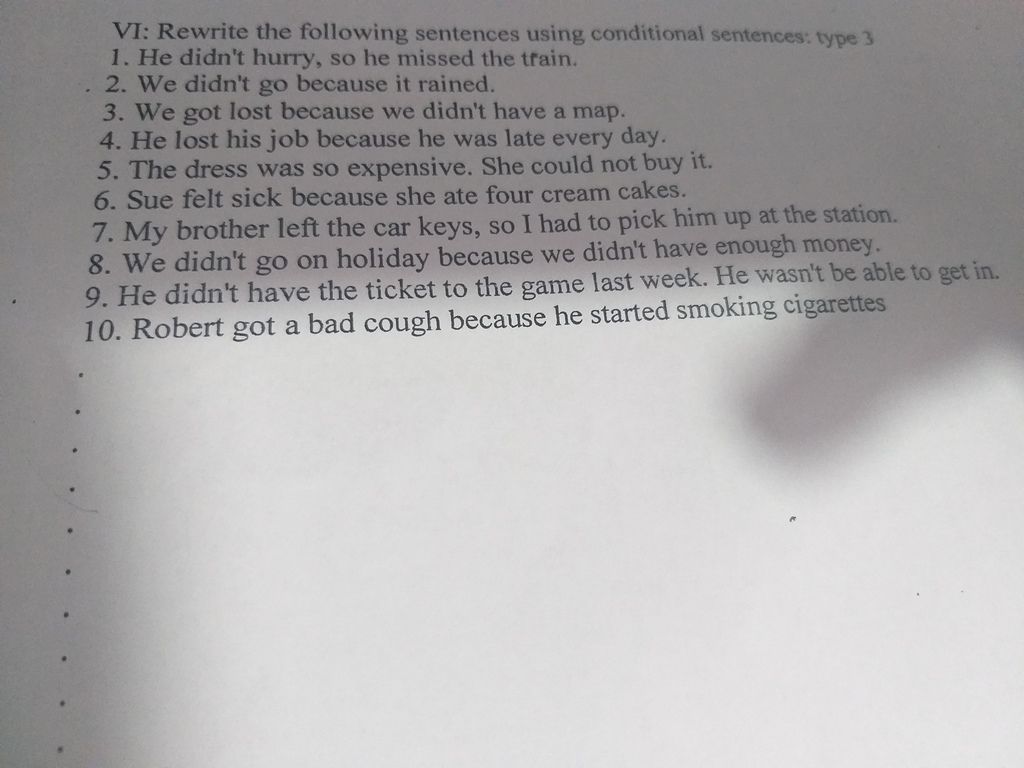 10. If Robert hadn't smoked cigarettes, he wouldn't have got a bad cough.