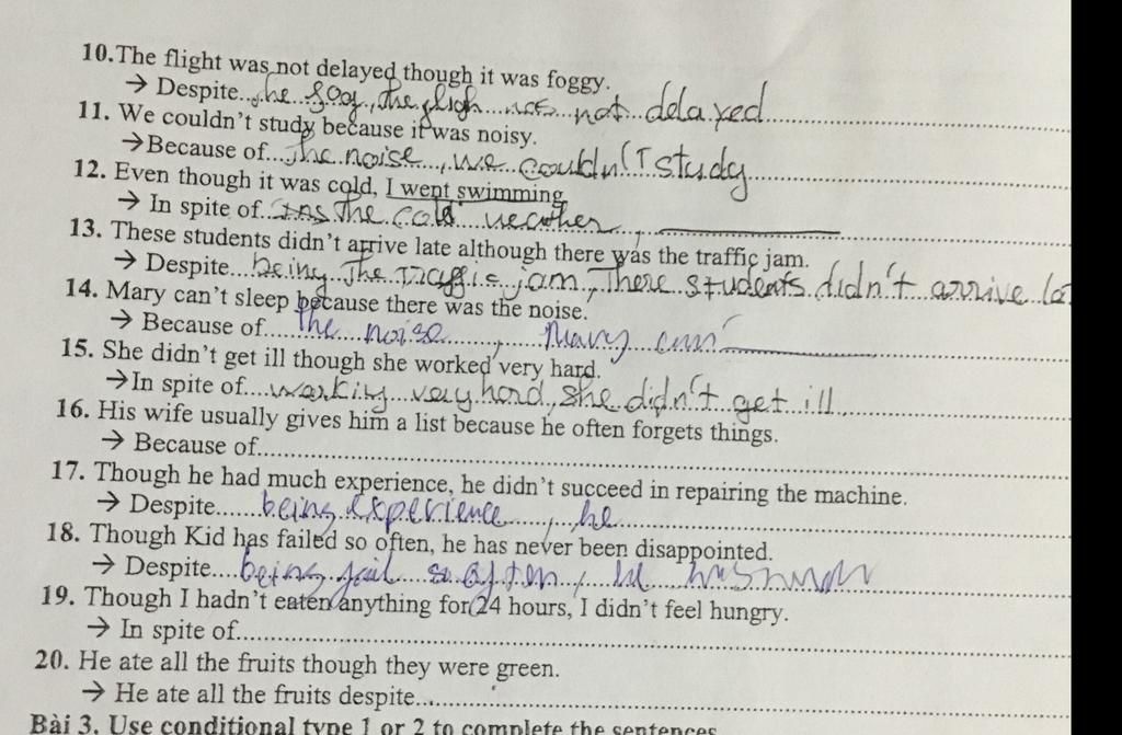 câu 20 despite being green he eat all the fruit mới đúng chứ nhỉ cou giải đáp thắc mắc giúp tớ