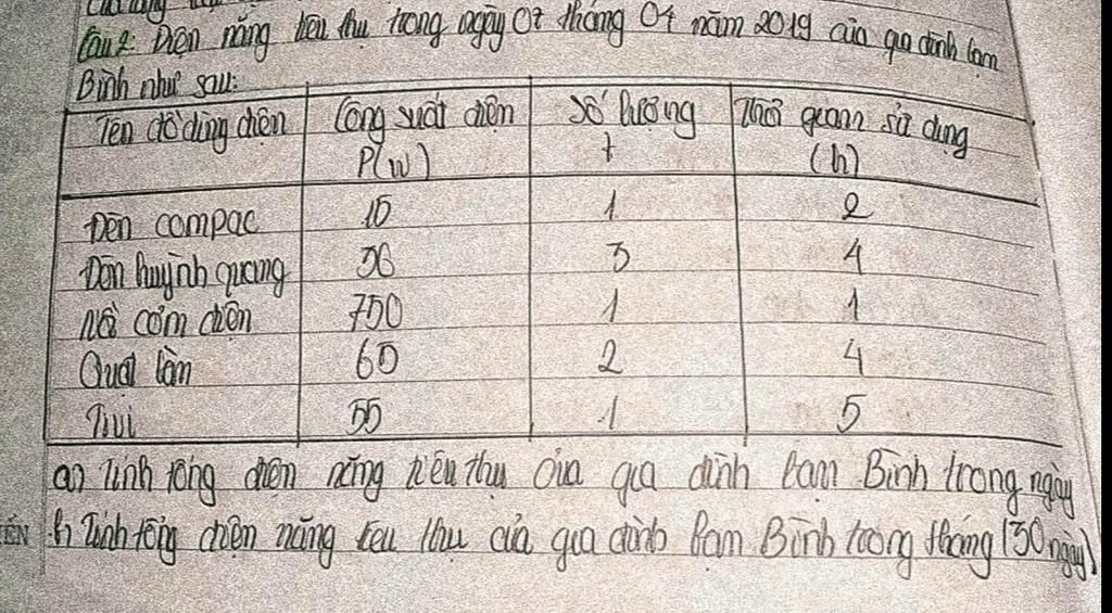 a) Điện năng tiêu thụ của gia đình bạn Bình trong ngày là: