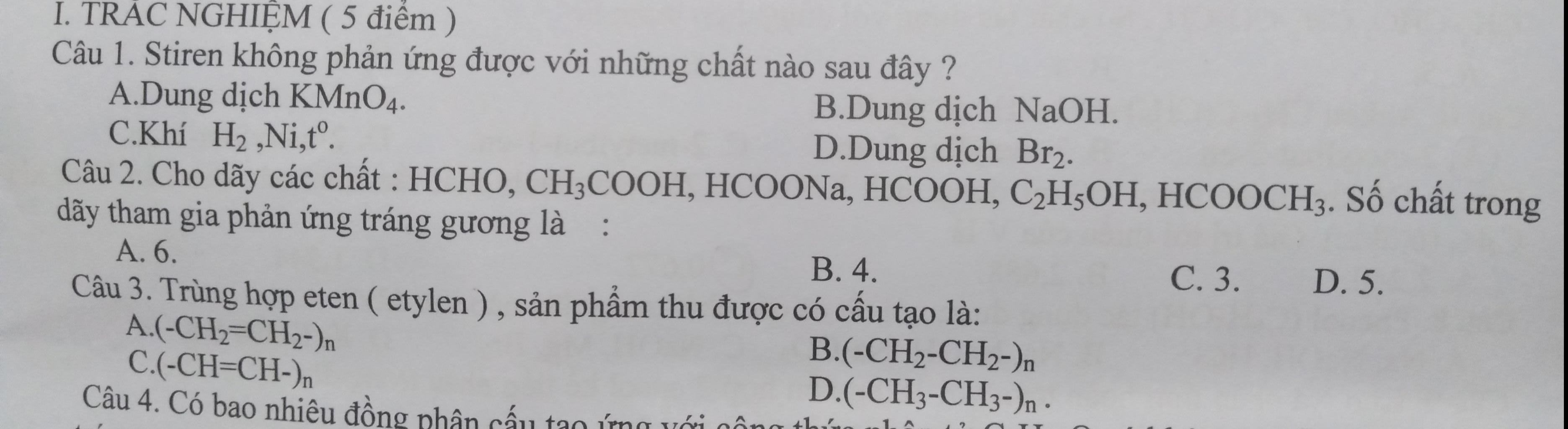 Stiren không có nhóm chức nào phản ứng với $NaOH$.