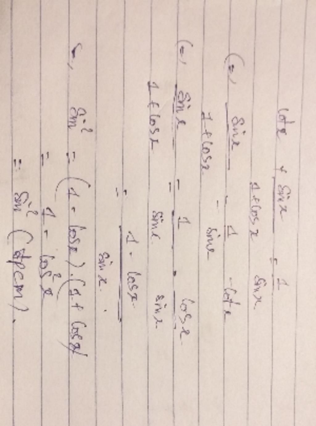 $=\dfrac{\cos x}{\sin x}+\dfrac{(1-\cos x)(1+\cos x)}{\sin x(1+\cos x)}$