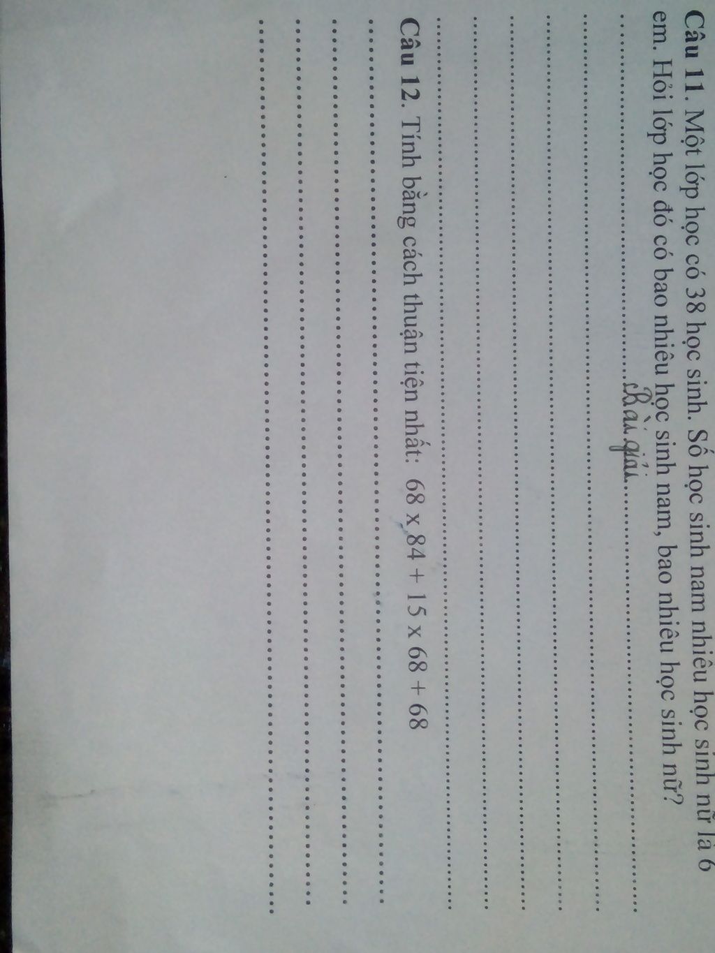 Đáp số: 22 học sinh nam ; 16 học sinh nữ