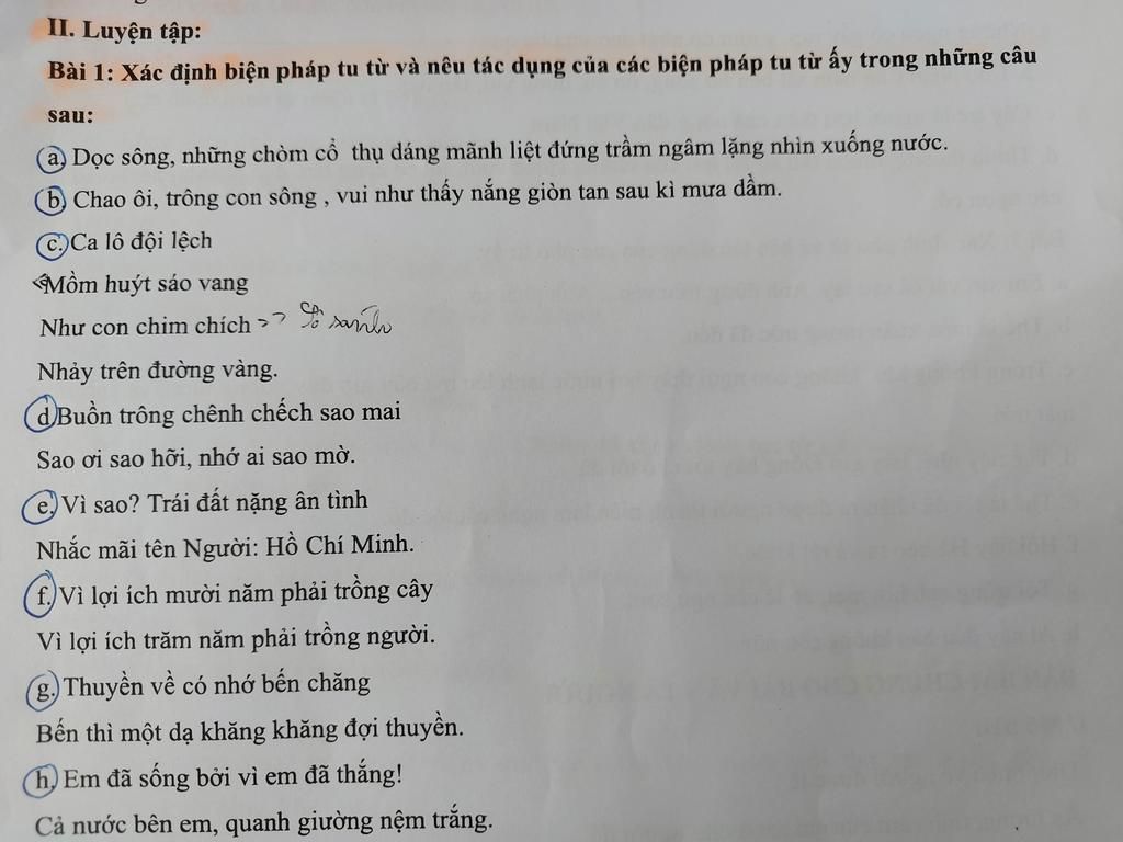 Bài 1: Xác định biện pháp tu từ và nêu tác dụng của các biện pháp tu từ ấy trong những câu
