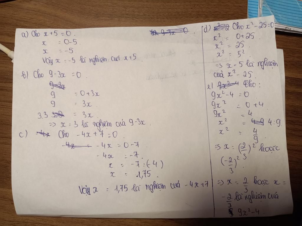 e) Để đa thức `9x^2 - 4` có nghiệm thì