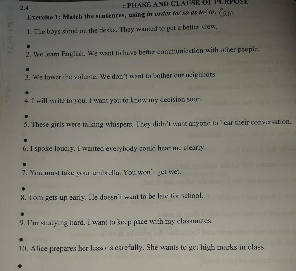 4. I will write to you so that you can know my decision. ( đề bài cần có so that để nối với mệnh đề)
