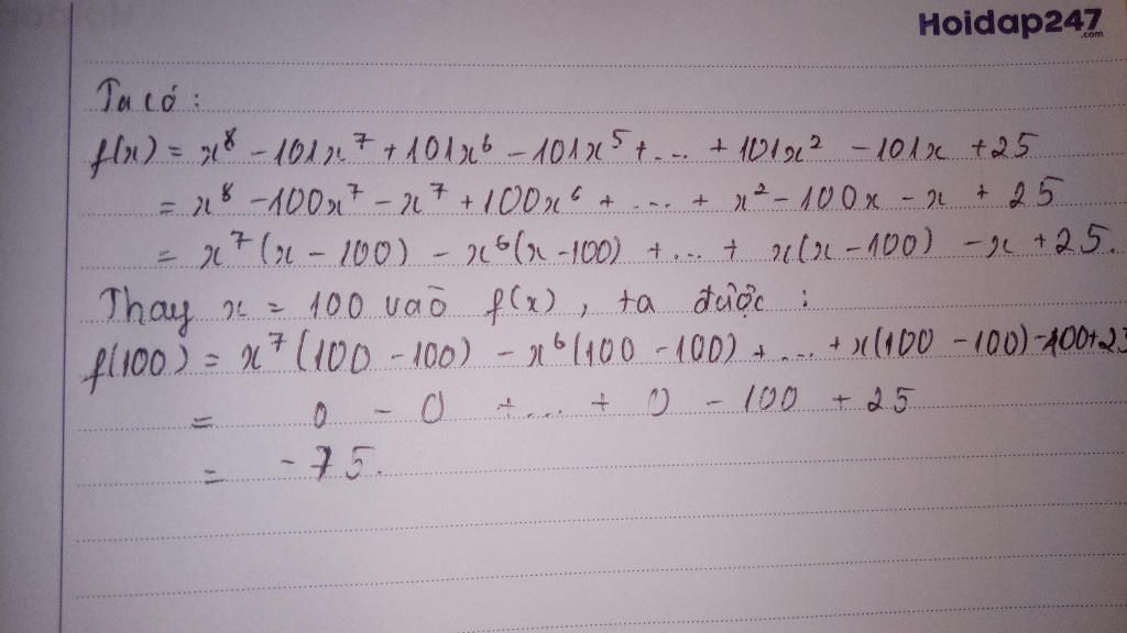 `=x^7(x-100)-x^6(x-100)+...+x(x-100)-x+25`