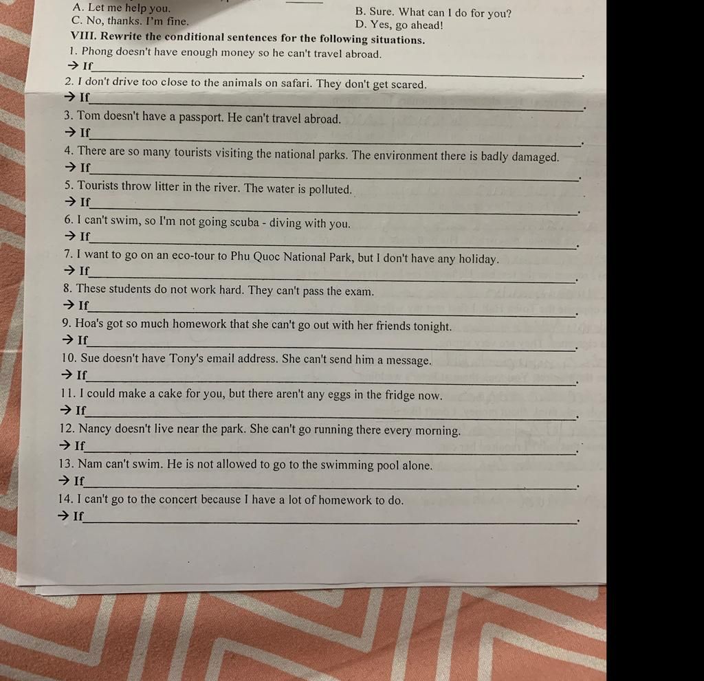 9) If Hoa didn’t have so much homework, she would could go out with her friends tonight