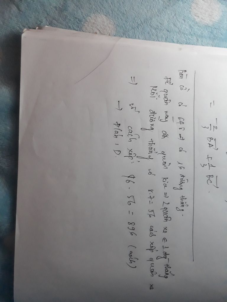 $\rightarrow $ Số cách xếp là $8.7.16=896$ cách