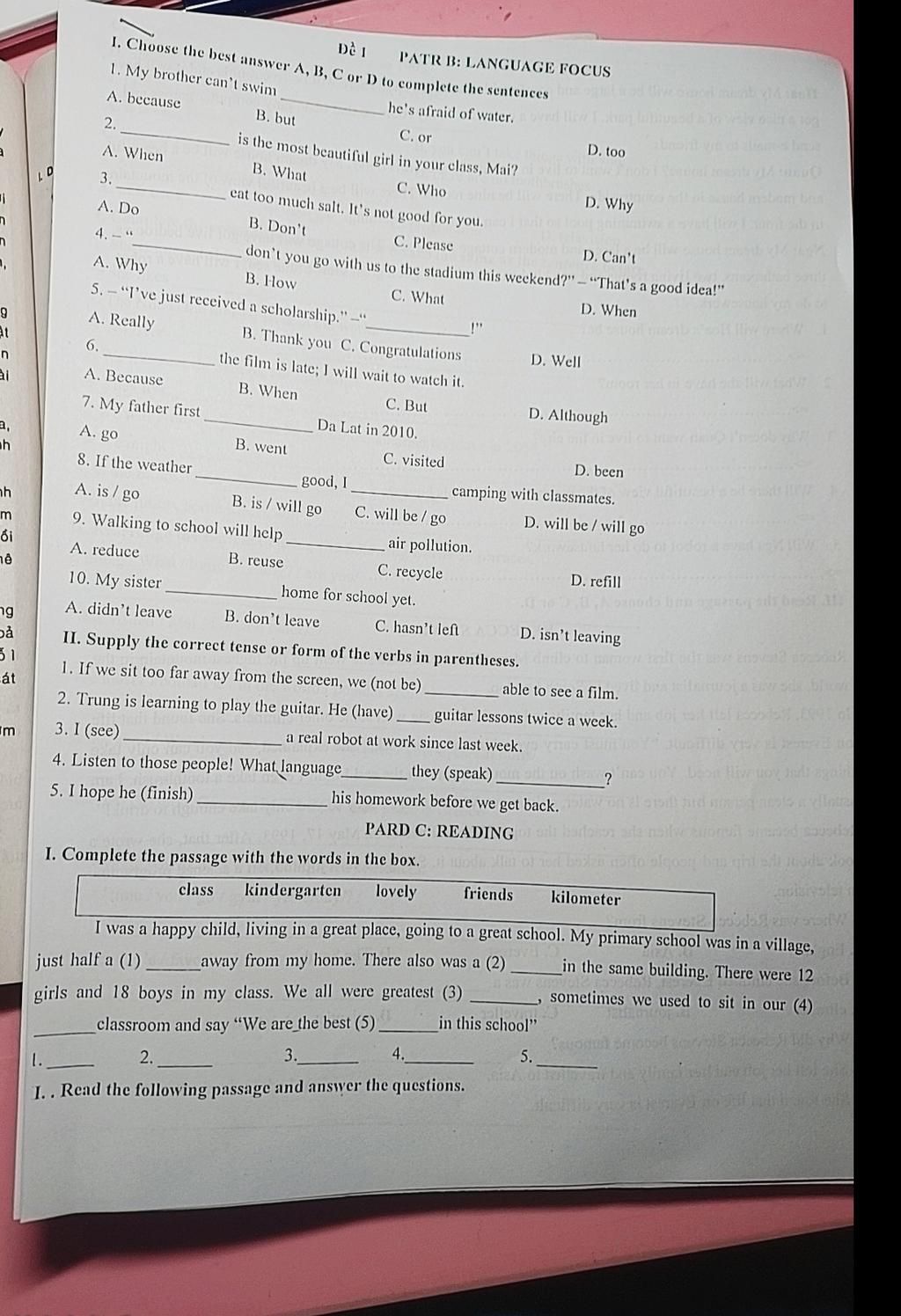 I. Choose the best answer A, B, C or D to complete the sentences co 4