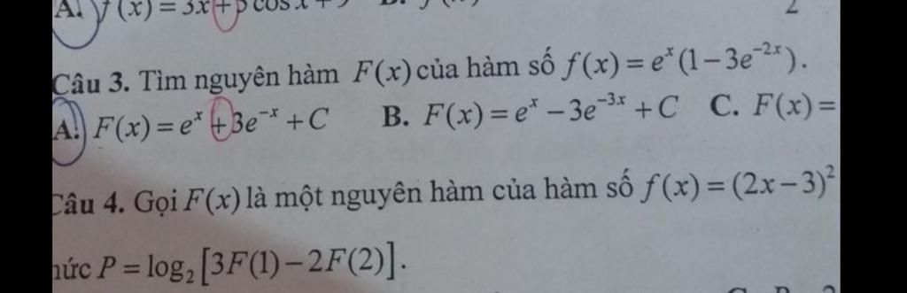 F\left( x \right) = \int {{e^x}\left( {1 - 3{e^{ - 2x}}} \right)} dx\\