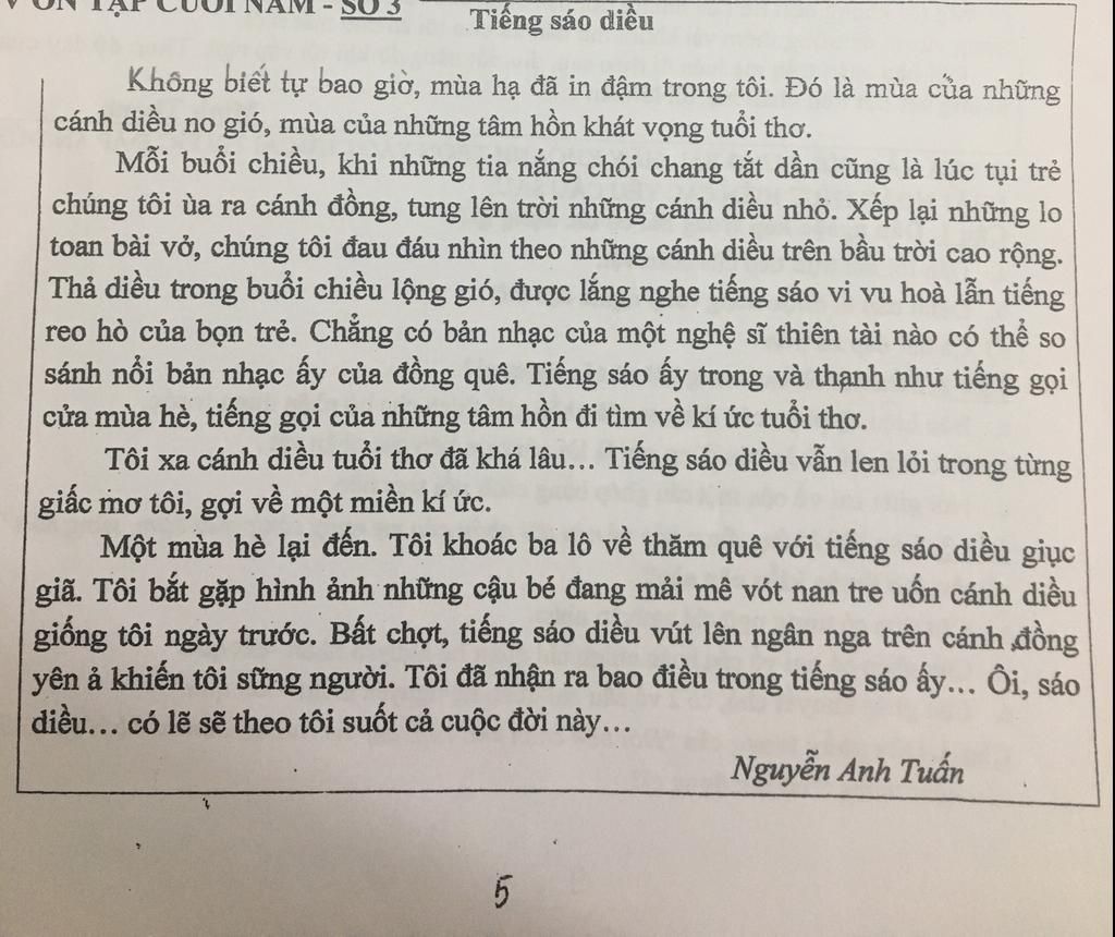 Đặt mình vào vai tác giả , em hãy viết những điều mình đã nhận ra khi nghe tiếng sáo diều: