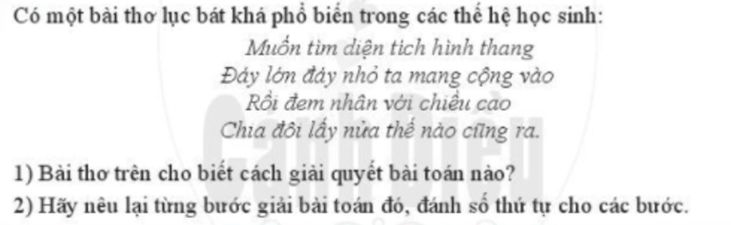 1) Bài thơ cho biết các tính diện tích hình thang