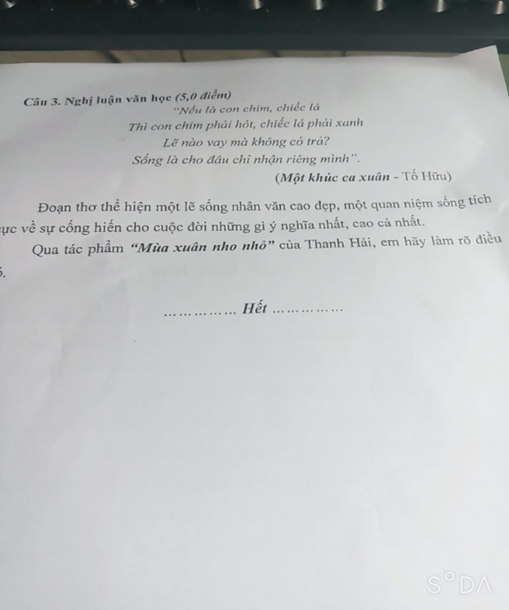 Chị ơi, đề là qua bài thơ MXNN, thì em nghĩ là phải có phần phân tích bài MXNN chứ chị ? Em thấy khổ 4+5 nói đến lối sống này