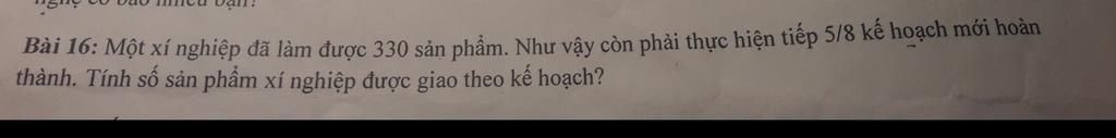 `330 : 3/8 = 880` `\text{(sản phẩm)}`