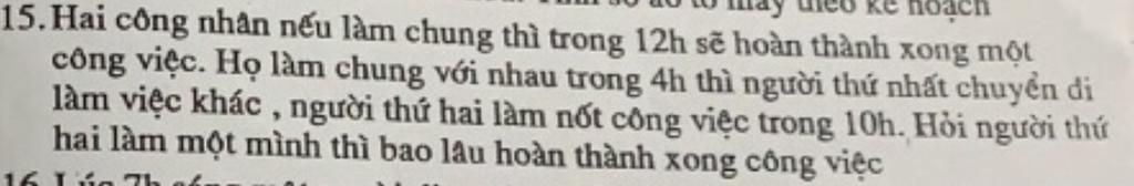 Vậy người thứ hai làm một mình trong 15h thì hoàn thành xong công việc.