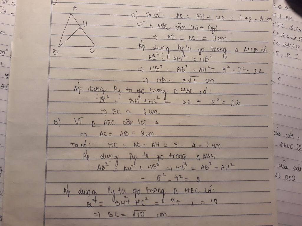 Áp dụng Pytago trong $\Delta HBC$ có: