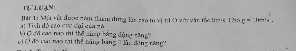 c. Độ cao tại nơi thế năng bằng 4 lần động năng là:
