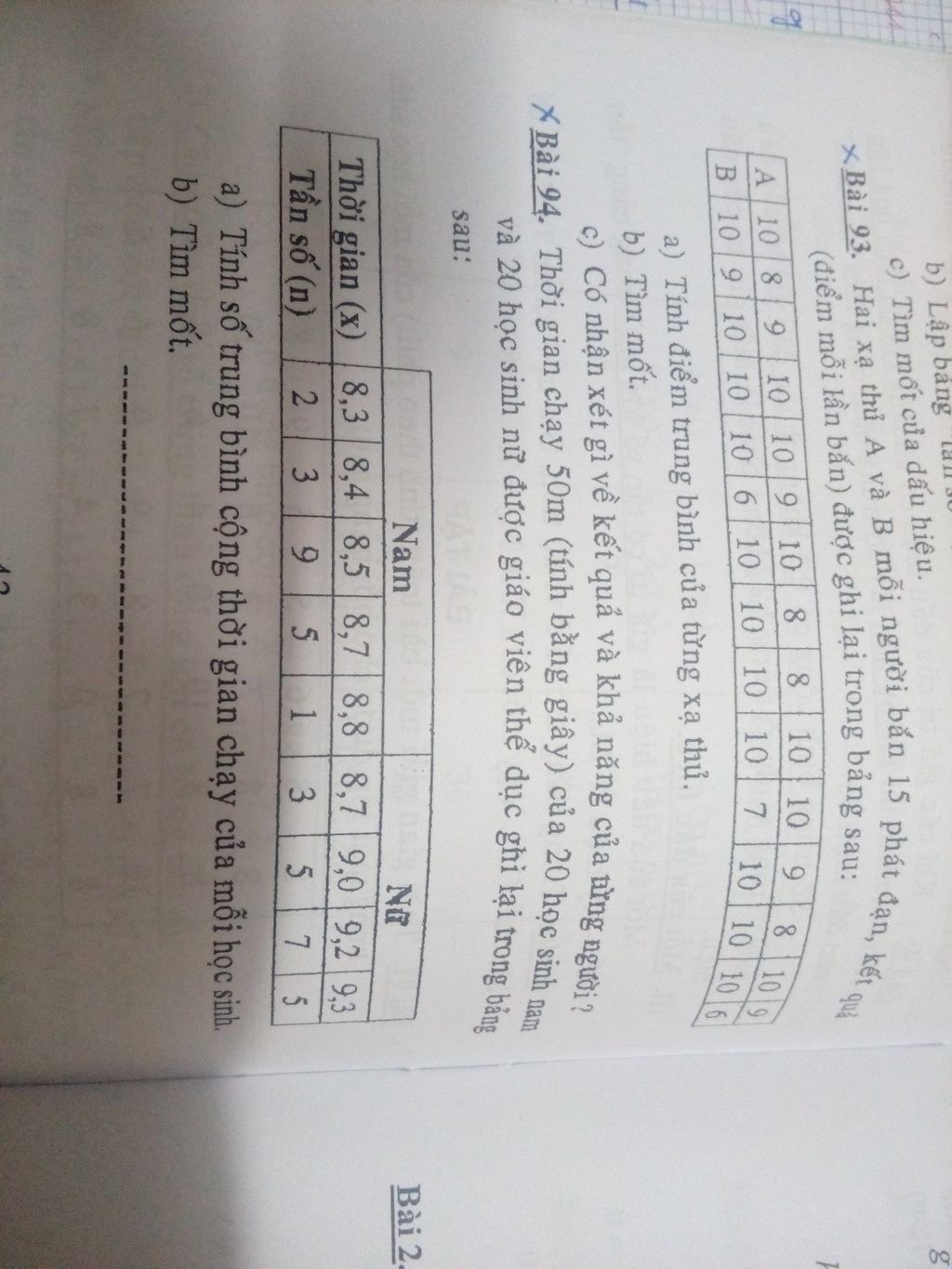 b/ 8.5 là mốt vì nó có tần số lớn nhất