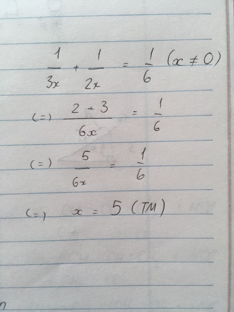 3 . 1 / 3x + 1 / 2x = 1 / 6