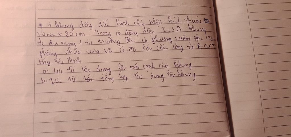 \(a = 20cm;b = 30cm;I = 5A;B = {0.1^2}T\)