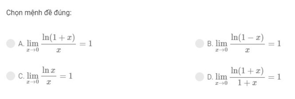 $lim_{x\rightarrow 0}\dfrac{ln(1+x)}{x}=1\rightarrow A$