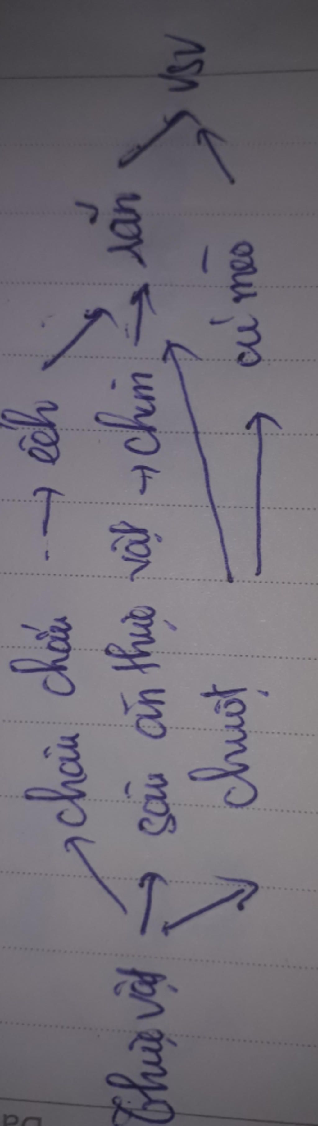 Thực vật `->` Sâu hại thực vật`->` Ếch `->` Rắn `->` Cú mèo `->` Vi sinh vật phân giải...