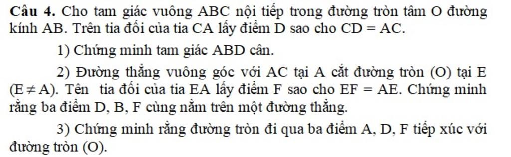 Từ `(1);(2)=>D;B;F` thẳng hàng (tiên đề Ơclit)