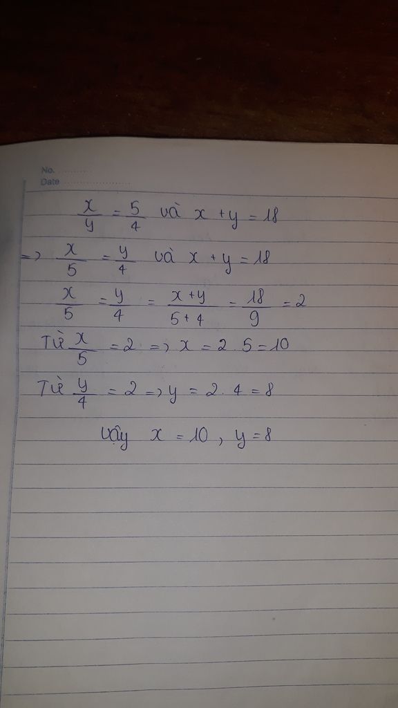 Vì x/y=5/4⇒x/5=y/4