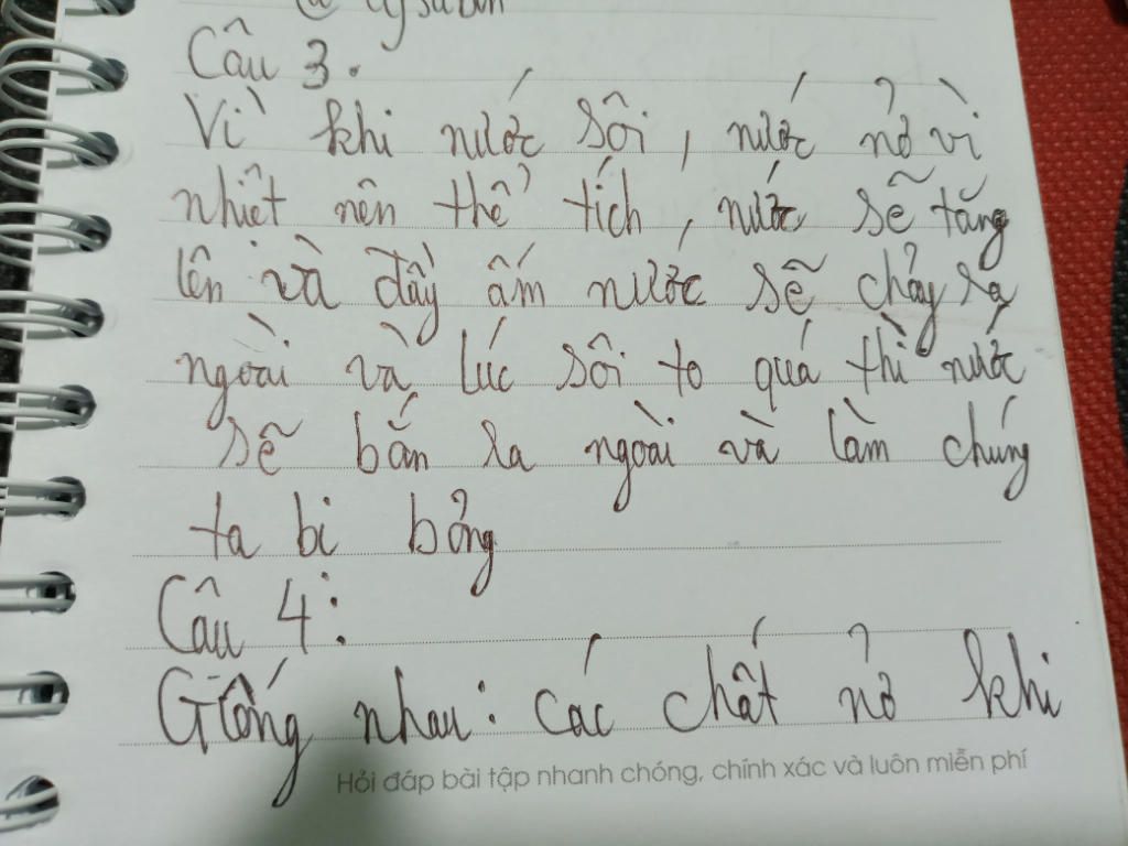 Câu 3: Giải thích tại sao khi đun nước ta không nên đổ nước thật đầy ấm?