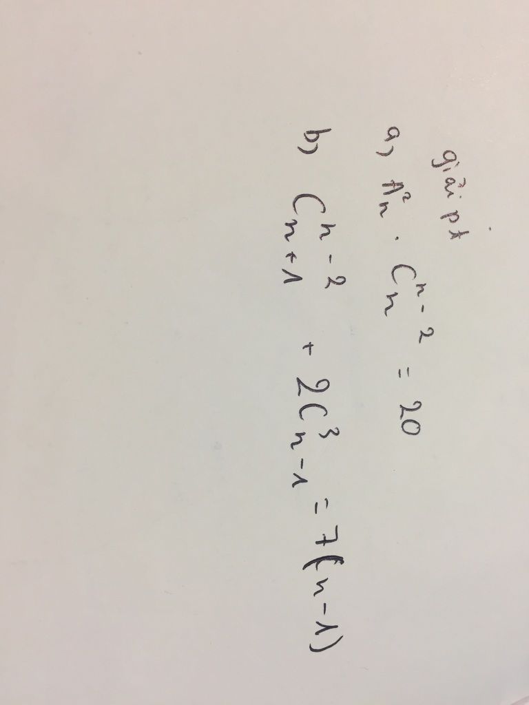 \frac{{(n + 1)!}}{{(n - 2)!.3!}} + 2.\frac{{(n - 1)(n - 2)(n - 3)}}{{3!}} = 7(n - 1)\\