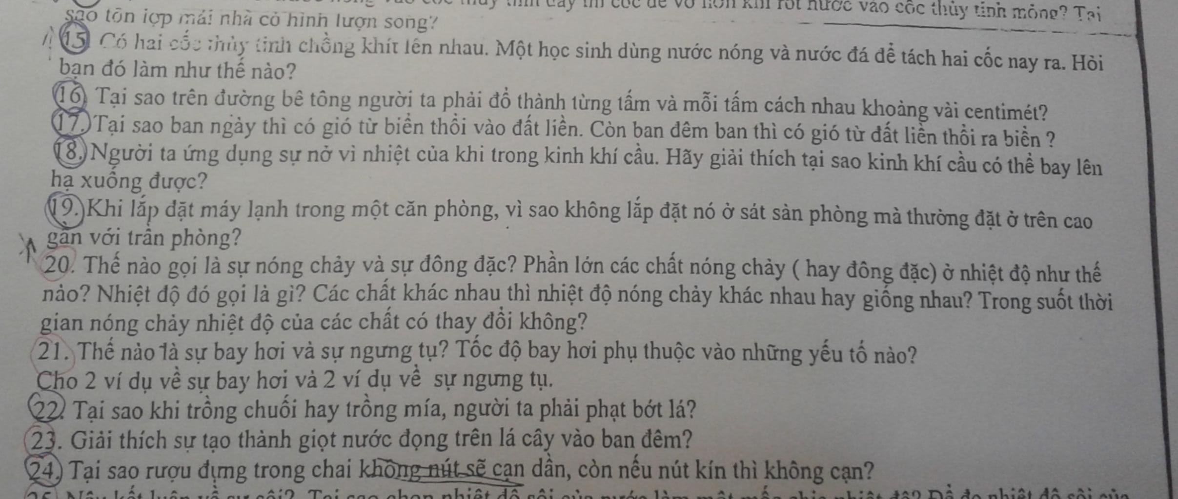 15. Cho nước đá vào cốc nằm bên trong để cốc này co lại, đồng thời nhúng cốc ngoài vào nước nóng để cốc này nở ra. Như vậy sẽ tách được hai cốc bị chồng khít vào nhau.