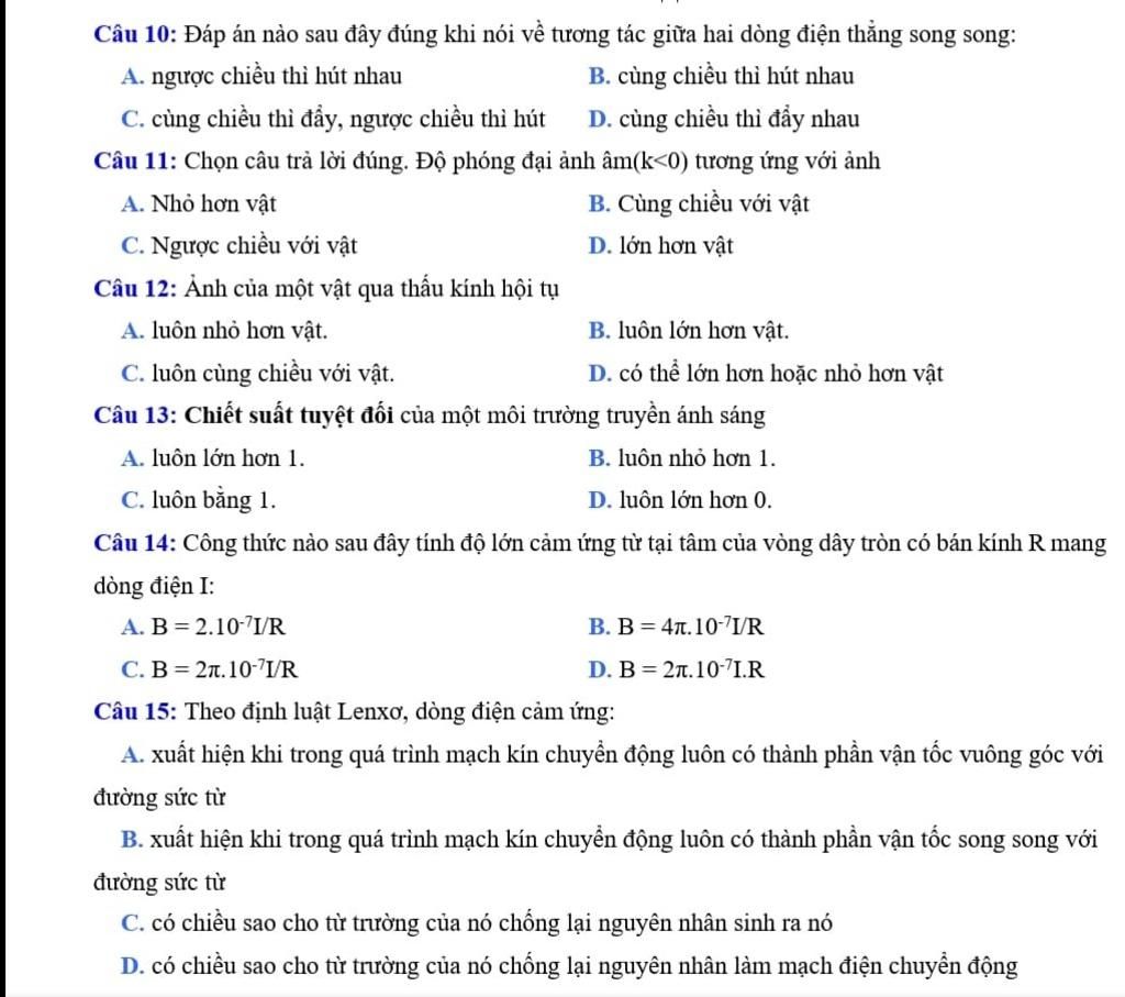 Câu 12: D