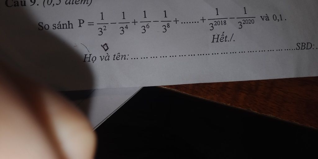 \Leftrightarrow {3^2}P + P = \left( {\frac{1}{{{3^2}}} - \frac{1}{{{3^4}}} + \frac{1}{{{3^6}}} - \frac{1}{{{3^8}}} + .... + \frac{1}{{{3^{2018}}}} - \frac{1}{{{3^{2020}}}}} \right)\\