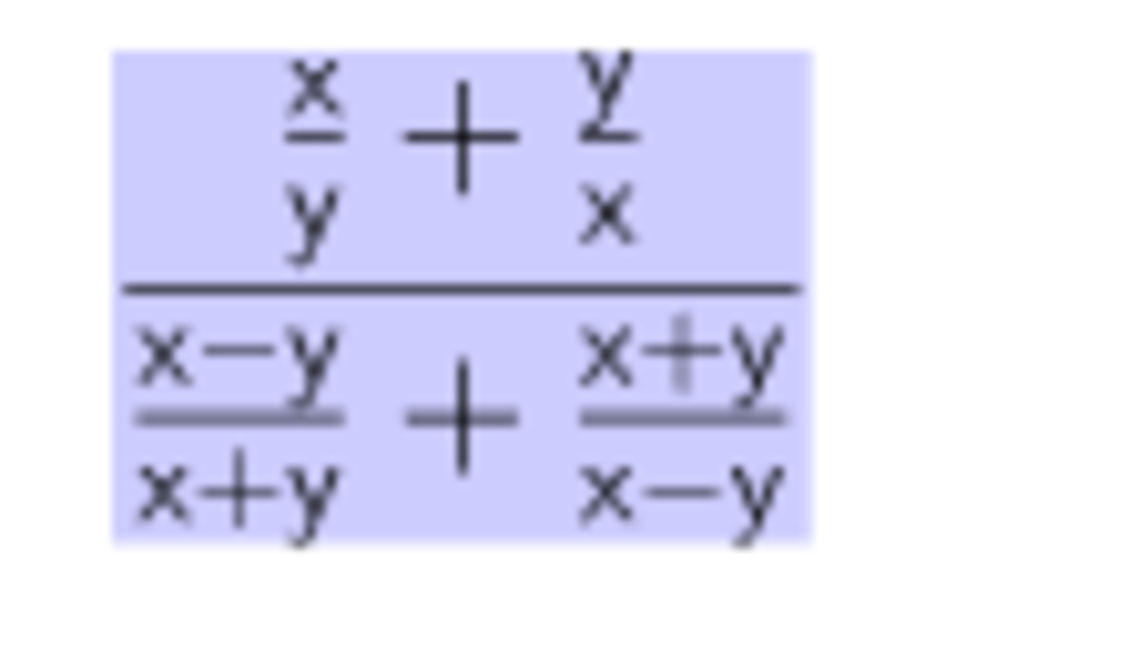 \frac{{\frac{x}{y} + \frac{y}{x}}}{{\frac{{x - y}}{{x + y}} + \frac{{x + y}}{{x - y}}}}\\