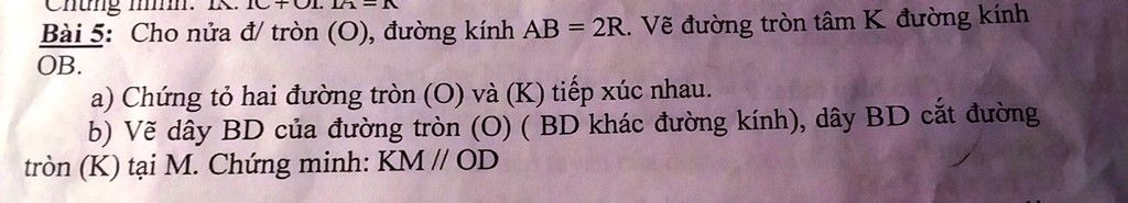 Đường tròn tâm K bán đường kính OB -> R'=OK=$\frac{R}{2}$