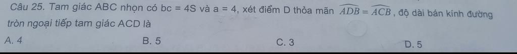 => đường tròn ngoại tiếp ACD là đường tròn ngoại tiếp ABC hay R = 4