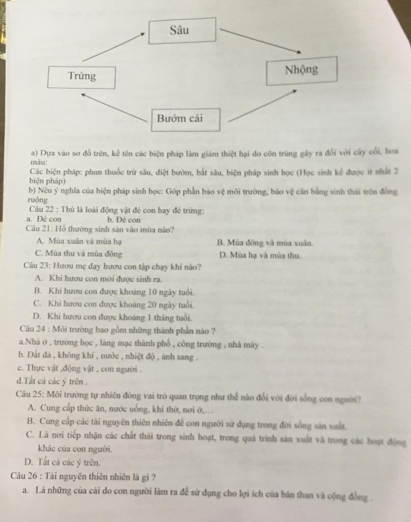 24/ d tất cả các ý trên( môi trường bao gồm tất cả những gì có trên trái đất)