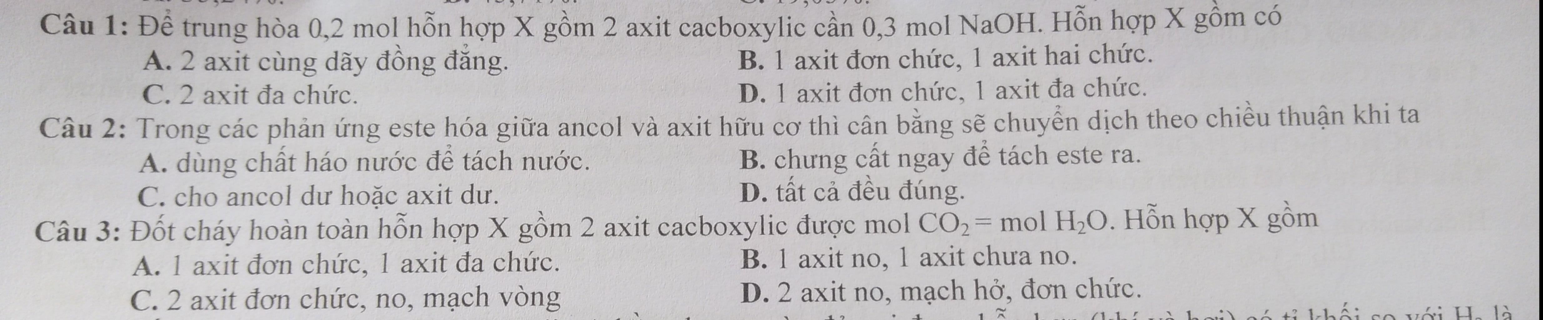 Do đó có $1$ axit đơn chức (số chức $<1,5$) và một axit đa chức (số chức $>1,5$). Chưa kết luận được axit đa chức có mấy chức.