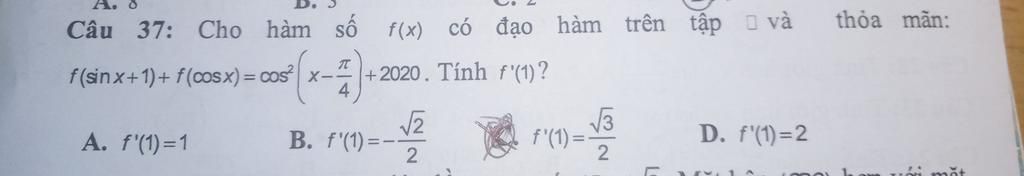 $ ⇔ cosx.f'(sinx + 1) - sinx.f'(cosx) = - 2cos(x - \dfrac{π}{4})sin(x - \dfrac{π}{4})$