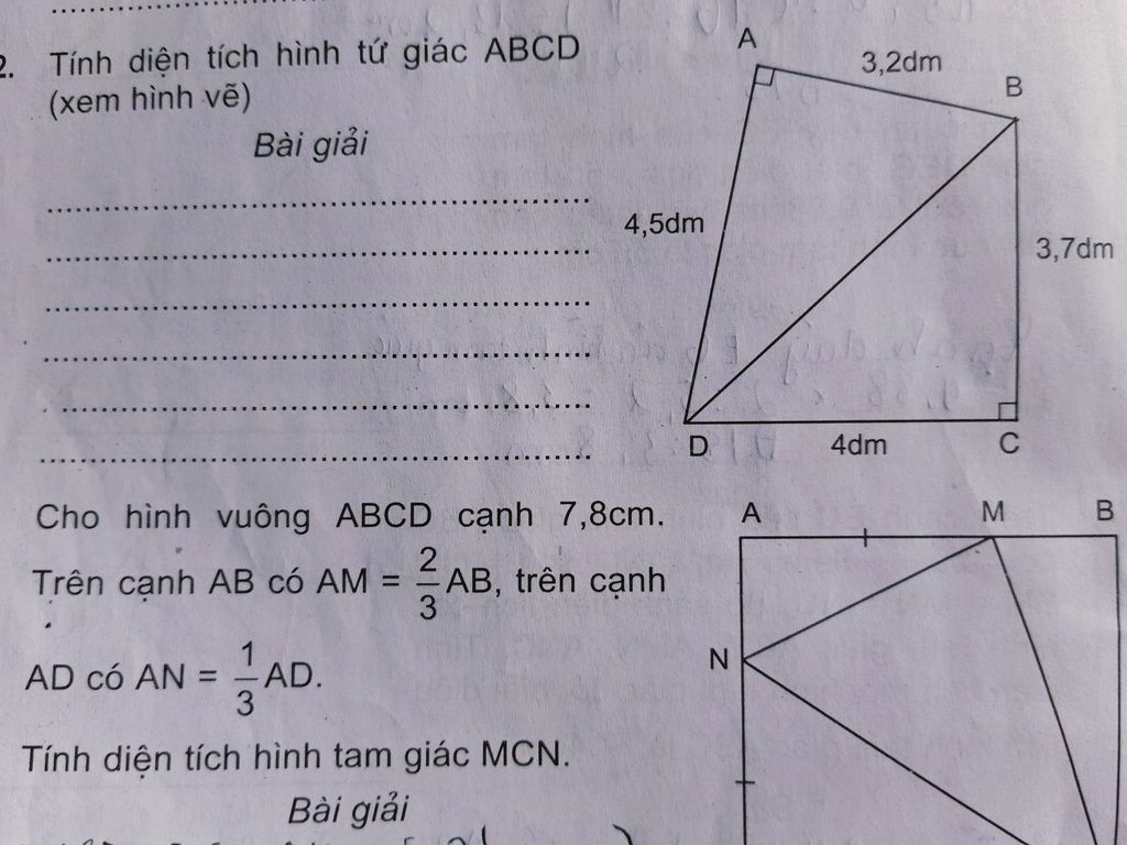 \(3,2 \times 4,5:2 = 7,2\left( {d{m^2}} \right)\)