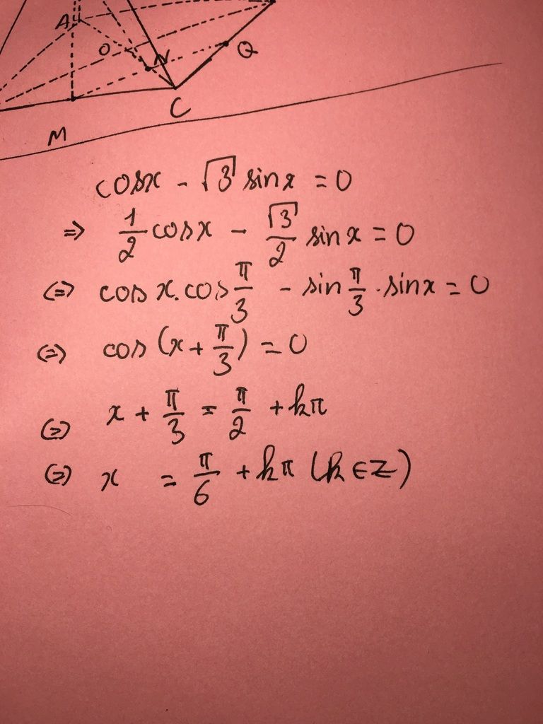 \( \Leftrightarrow 2(\frac{1}{2}cosx-\frac{\sqrt{3}}{2}sinx)=0\)