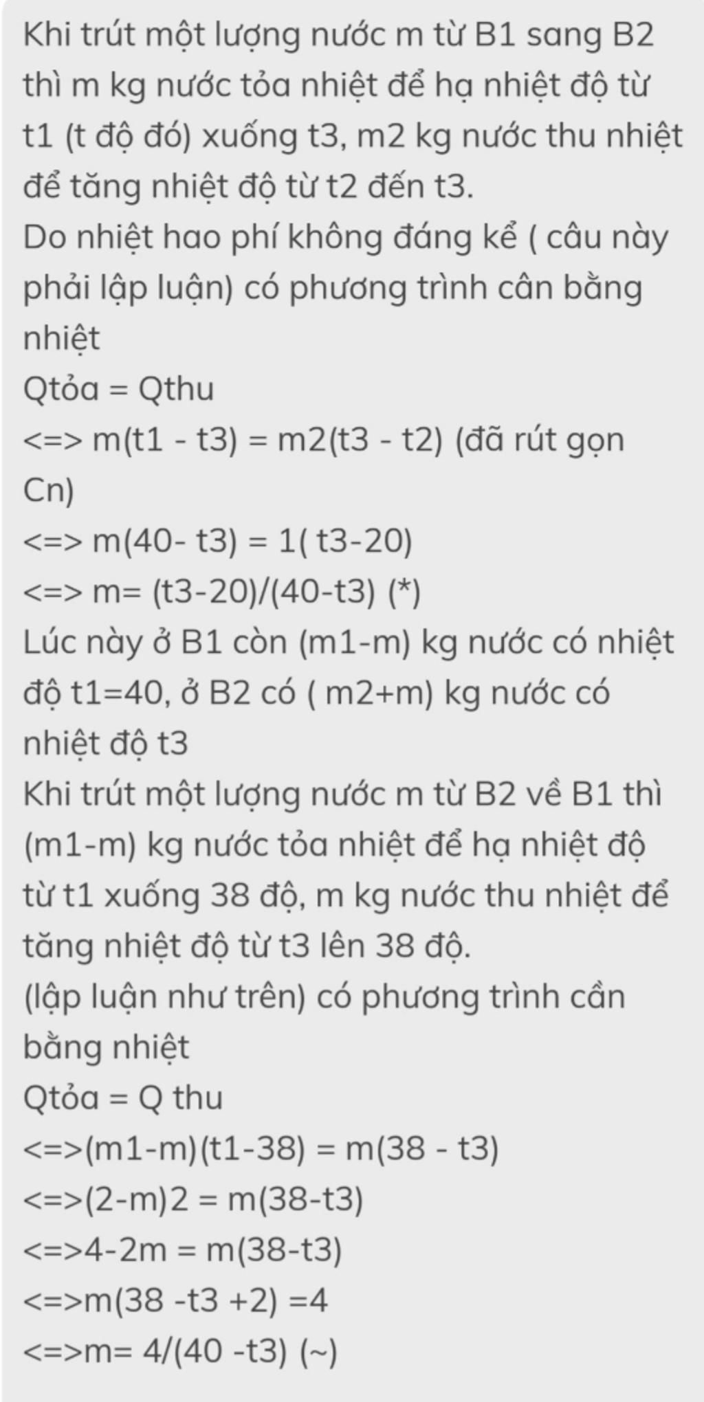 Cân bằng 2 khi rót m kg từ bình 2 sang bình 1