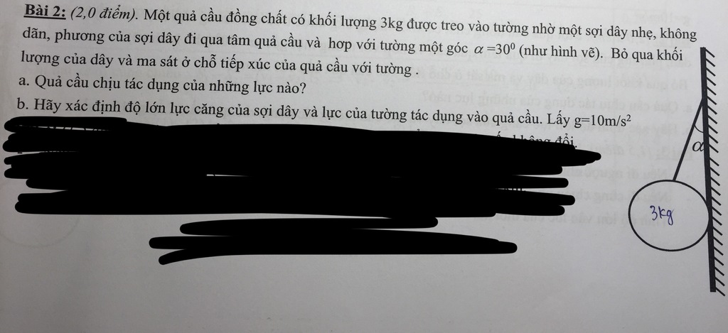 \tan \alpha = \frac{N}{P} \Rightarrow N = mg.\tan \alpha = 3.10.\frac{1}{{\sqrt 3 }} = 10\sqrt 3 \left( N \right)\\