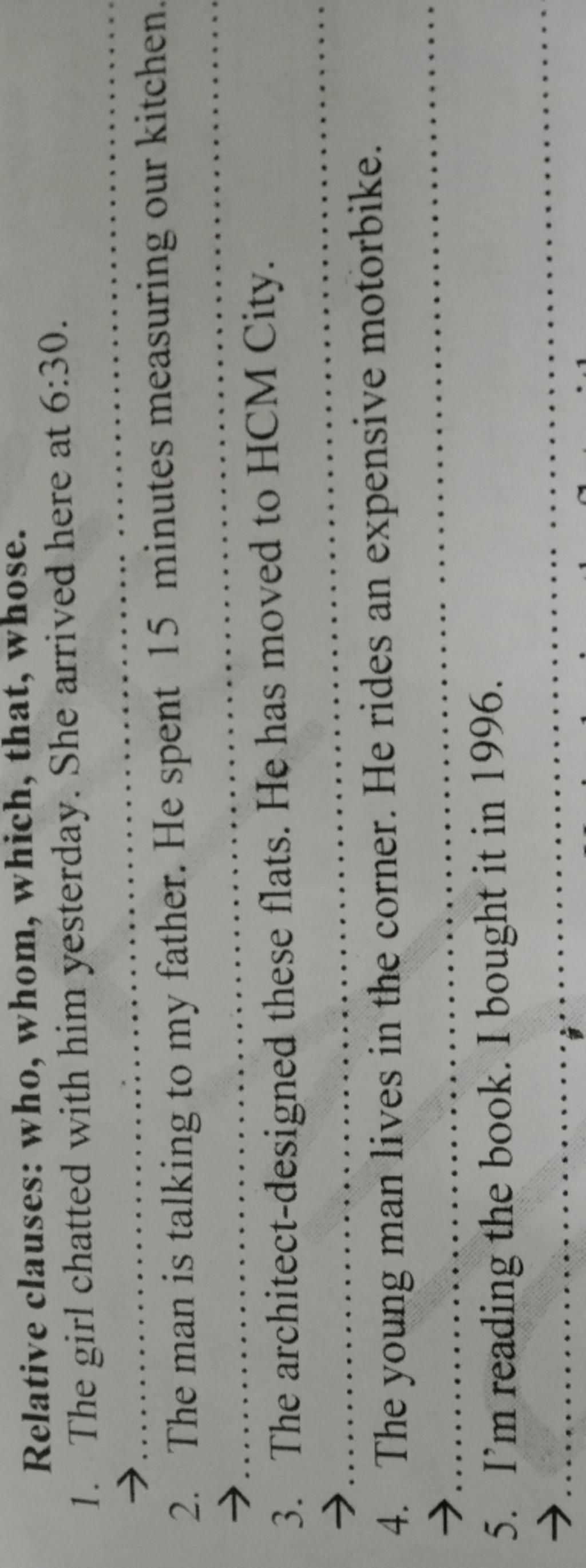 1. The girl who arrived here at 6.30 chatted with him yesterday.