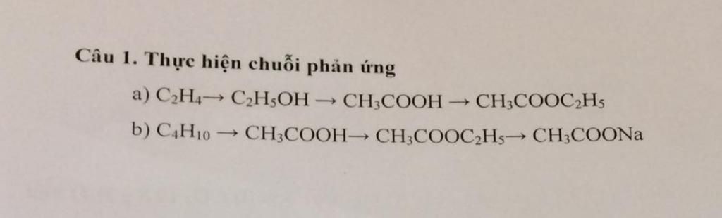 Câu 1: `a)` `C_2H_4 + H_2O \overset{t^o; xt}\to C_2H_5OH`