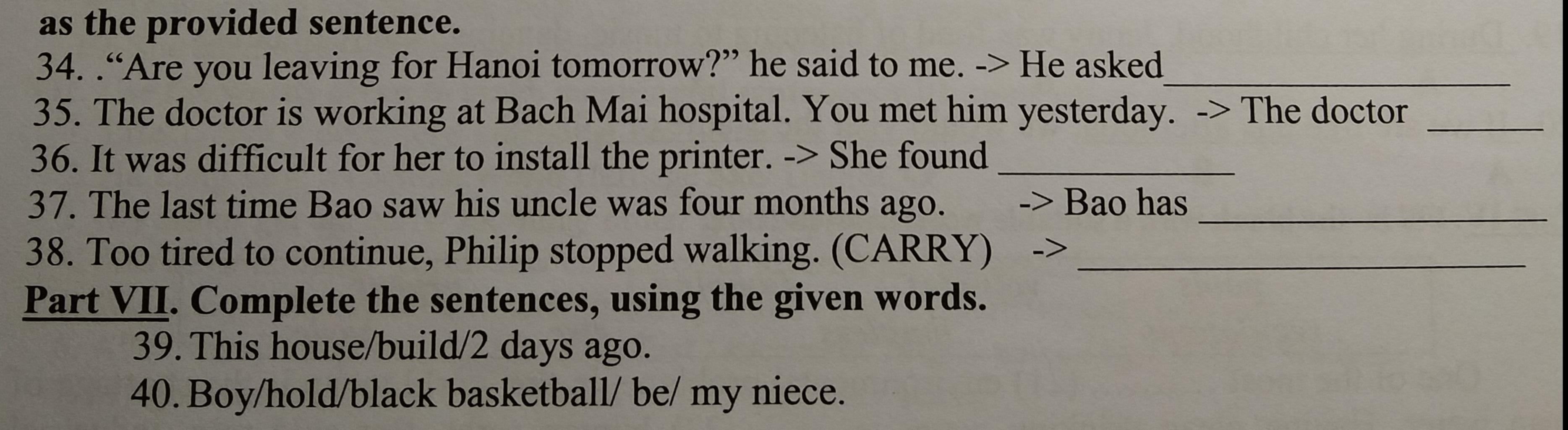 35. The doctor is working at Bach Mai hospital. You met him yesterday.